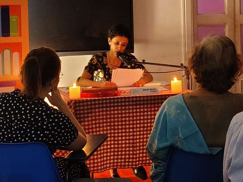 Monia concluded the Long Night of LiteratureS with a powerful performance in Varanasi, collaborating with a classical tabla musician, creating a rhythmic dialogue between words and sound. The performance was met with deep appreciation from the audience. She also participated in a moderated session with Dr. Vasumathi Badrinathan from the Banaras Hindu University, discussing poetic practice, influences, and the emotional landscapes of her work.