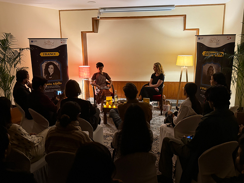 The 15th edition of the Long Night of LiteratureS took place between 17th to 24th November 2025 across New Delhi, Kolkata and Varanasi, welcoming authors from 14 countries. France was represented by Villa Swagatam resident Monia Aljalis, who participated in events in all three cities.