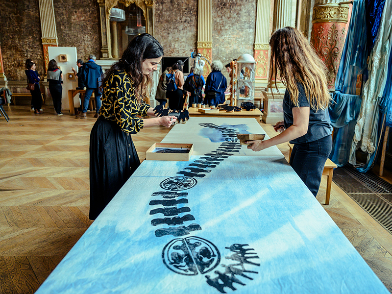 A participatory workshop led by artists Martha-Maria Le Bars and Pauline Guerrier, both former residents of Villa Swagatam, invited participants to explore the intimate connections between colour, textiles, and traditional craftsmanship. Rooted in their experiences in India, the workshop offered a sensorial reflection on material culture and shared creative processes.